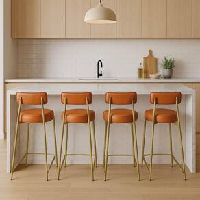 Banqueta Cozinha Média Com Encosto Industrial Dourado Kit 4 Londres Pu Whisky D03 - D'rossi Renove sua cozinha, área gourmet ou ambiente comercial com o kit 4 Banquetas Média Londres em sintético PU Whisky. Com 85 cm de altura total e 65 cm do assento ao chão, possui a proporção perfeita para bancadas e ilhas médias, garantindo conforto e ergonomia em cada uso. A estrutura em aço carbono na cor dourada combinada à madeira de reflorestamento assegura resistência e durabilidade, enquanto o acabamento em pintura epóxi protege e realça o visual industrial da peça. O assento e o encosto fixos, estofados em espuma D-26 de alta densidade, proporcionam maciez e sustentação ideais. O revestimento agrega sofisticação e é fácil de limpar, mantendo o aspecto elegante por muito mais tempo. Seu design industrial apresenta base metálica vazada, que traz leveza visual e robustez estrutural, além de apoio para os pés integrado e capacidade para até 120 kg com total . A Banqueta Londres é a escolha certa para quem busca elegância, praticidade e conforto em um só produto. Dimensões do Produto: