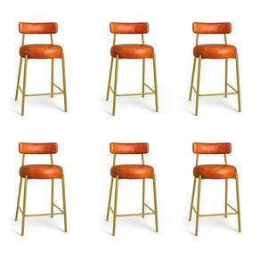 Banqueta Cozinha Média Com Encosto Industrial Dourado Kit 6 Londres Pu Nozes D03 - D'rossi