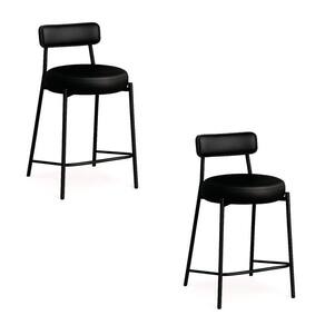 Banqueta Cozinha Média Com Encosto Industrial Preto Kit 2 Londres Pu Preto D03 - D'rossi Renove sua cozinha, área gourmet ou ambiente comercial com o kit 2 Banquetas Média Londres em sintético PU Preto. Com 85 cm de altura total e 65 cm do assento ao chão, possui a proporção perfeita para bancadas e ilhas médias, garantindo conforto e ergonomia em cada uso. A estrutura em aço carbono na preta combinada à madeira de reflorestamento assegura resistência e durabilidade, enquanto o acabamento em pintura epóxi protege e realça o visual industrial da peça. O assento e o encosto fixos, estofados em espuma D-26 de alta densidade, proporcionam maciez e sustentação ideais. O revestimento agrega sofisticação e é fácil de limpar, mantendo o aspecto elegante por muito mais tempo. Seu design industrial apresenta base metálica vazada, que traz leveza visual e robustez estrutural, além de apoio para os pés integrado e capacidade para até 120 kg com total segurança. A Banqueta Londres é a escolha certa para quem busca elegância, praticidade e conforto em um só produto. Dimensões do Produto: