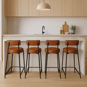 Renove sua cozinha, área gourmet ou ambiente comercial com o kit 4 Banquetas Média Londres em sintético PU. Com 85 cm de altura total e 65 cm do assento ao chão, possui a proporção perfeita para bancadas e ilhas médias, garantindo conforto e ergonomia em cada uso. A estrutura em aço carbono na preta combinada à madeira de reflorestamento assegura resistência e durabilidade, enquanto o acabamento em pintura epóxi protege e realça o visual industrial da peça. O assento e o encosto fixos, estofados em espuma D-26 de alta densidade, proporcionam maciez e sustentação ideais. O revestimento agrega sofisticação e é fácil de limpar, mantendo o aspecto elegante por muito mais tempo. Seu design industrial apresenta base metálica vazada, que traz leveza visual e robustez estrutural, além de apoio para os pés integrado e capacidade para até 120 kg com total segurança. A Banqueta Londres é a escolha certa para quem busca elegância, praticidade e conforto em um só produto.