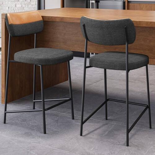 Banqueta Cozinha Média Kit 2 Milli Linho Grafite/Caramelo A14 - Mpozenato