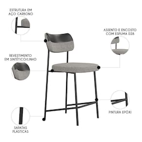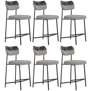 Banqueta Cozinha Média Kit 6 Milli Linho Cinza/Preto A14 - Mpozenato