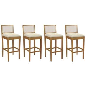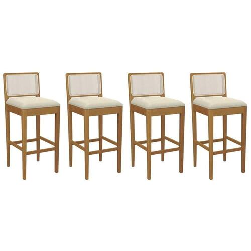 Banqueta Cozinha Sara 1BMM005CA Premium Madeira Maciça Kit 4 Un Carvalho/Linho Bege Argila/Tela Bege - Kappesberg - Blush