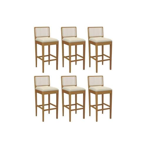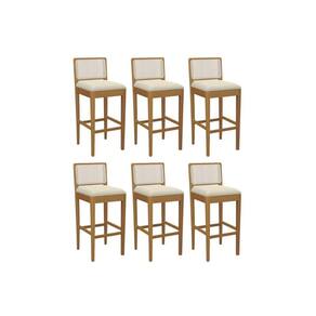 Banqueta Sala de Jantar Sara 1BMM005CA Premium Madeira Maciça Kit 6 Un Carvalho/Linho Bege Argila/Tela Bege Kappesberg
