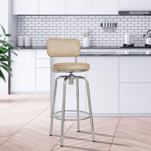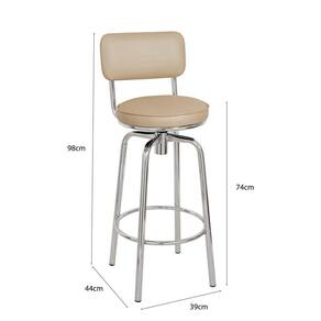 A banqueta Capadócia por ser giratória e ter encosto estofado anatômico, é ideal para quem está em busca de conforto e design diferenciado. Além do conforto ela deixa o ambiente mais moderno e elegante. Sua estrutura é de tubo 1 polegada de aço carbono com acabamento cromado, sistema giratório com bucha, assento e encosto estofados em couríssimo. O toque especial está no acabamento, na soma de matéria prima de excelente qualidade tudo para garantir conforto e durabilidade da peça. Acabamento da Estrutura: Cromado Almofada do assento: Fixa Almofada do encosto: Fixa Altura do assento até o chão: 74 Altura do Encosto: 24 Altura Regulável: Não Ambiente Principal: Cozinha Cor: Cromado/Bege Metalizado Cor do Produto: Cromado/Bege Metalizado Dobrável: Não Enchimento do Assento: Espuma D-30 Enchimento do Encosto: Espuma D-30 Escala de Brilho: Brilhante Itens Inclusos: 1 Banqueta Linha ou Coleção: Capadócia Material do Assento: Almofada com Espuma Material do Encosto: Almofada com Espuma Necessita Montagem: Não Origem do Produto: Nacional Peso: 5.1 Possui Almofada no Assento: Sim Possui Apoio Para os Pés: sim Possui Encosto: Sim Possui Rodízio: Não Recomendações de Uso, Manutenção e Limpeza: Utilizar pano umedecido Revestimento do Assento: courino Revestimento do Encosto: courino Tipo de Assento: Fixo Tipo de Encosto: Fixo Ean: 7909903179307