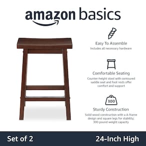 Amazon Basics Banco de madeira maciça, assento de cozinha, 61 cm de altura, acabamento de nogueira - conjunto de 2