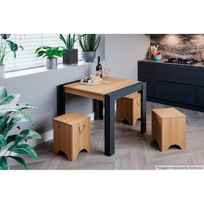 Banqueta De Cozinha Kim Kit 4 Un Preto/nature - Cimol