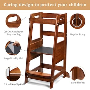 Banqueta de bambu para crianças pequenas com torre em pé ajustável com proteção antiderrapante - Material de bambu e resistente: o banquinho infantil é feito de 100% bambu natural. Dois pés de suporte curvos adicionais melhoram a estabilidade e o equilíbrio deste banquinho infantil. As grades de quatro lados fornecem suporte perfeito quando seus filhos estiverem dentro, para que as crianças não caiam de lugares altos. - Design ajustável em altura: este banco de cozinha infantil é adequado para crianças acima de 18 meses. Plataforma ajustável de 3 níveis e pedal ajustável de 2 estágios permitem obter a altura perfeita para crianças de qualquer idade, o que pode testemunhar o crescimento de seus filhos. A barra transversal ajustável de 2 níveis com anéis pode atender às necessidades das crianças sentadas e em pé. - Antiderrapante 1+6: o tapete antiderrapante grande do mesmo tamanho da plataforma pode ser macio e confortável para proteger os pés do seu filho de escorregar. Esta torre infantil está equipada com 6 pequenas almofadas antiderrapantes, que são fixadas sob os pés. Pode evitar o deslizamento em solo molhado e proteger o chão de arranhões. - Fácil de montar e transportar: fácil montagem, ferramenta de instalação e instruções detalhadas estão incluídas no pacote. O banquinho com alça ajuda você a carregá-lo para qualquer lugar que você quiser. - BANQUETA DE COZINHA E MUTIFUNÇÕES: A torre de pé para crianças é muito útil para desenvolver habilidades de independência das crianças, ajuda seus filhos a preparar alimentos na cozinha, lavar e escovar os dentes na sala de lavagem, ter comida na sala de jantar e etc.