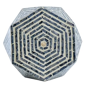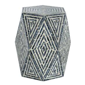 Banqueta de mesa Benjara de 18 polegadas Accent, design hexagonal, padrão de diamante, azul e branco