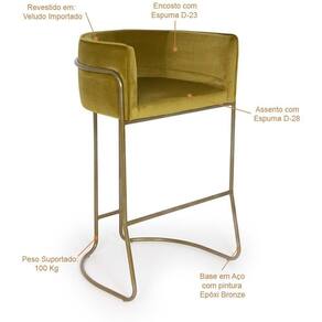 Banqueta Decorativa Fixa Base De Aço Bronze Betina D02 Veludo Mostarda C-260 - Lyam Decor A Banqueta Decorativa Fixa Base de Aço Bronze Betina D02 Veludo Mostarda C-260 - Lyam Decor exala formosura e elegância! Excelente opção para dispor em sua sala de estar, sala de jantar, em cozinha americana e até mesmo área gourmet. Seu protagonismo é notório, sem sombra de dúvidas é perfeita para qualquer ambientação que desejar colocá-la. Com sua resistente estrutura em aço, na cor Bronze, o encosto e assento revestidos em Veludo, deixarão sua decoração ainda mais sofisticada. Oferecendo máximo conforto sem deixar de transmitir todo a magnitude que seu lar merece! Dimensões do produto (L x A x P) 59 x 92 x 44 cm Medidas Internas: Altura do Assento: 74 cm Profundidade Livre do Assento: 43 cm Largura do Assento: 41 cm Altura livre do Encosto: 17 cm Largura do braço: 8 cm Altura do braço: 17 cm Altura dos pés: 67 cm Características: Estrutura em madeira de eucalipto; Partes em MDF e OSB; Revestimento em Veludo Mostarda; Assento Fixo com espuma D-28 Sobre Percintas elásticas; Encosto Fixo com espuma D-23 Sobre Percintas elásticas; Braço Espuma D-23; Peso suportado: Até 120 kg; Base em aço com acabamento em pintura epóxi na cor Bronze. - Por se tratar de estofado as medidas podem ter uma pequena variação de até 3 cm. - A tonalidade do produto real poderá ter ligeira variação devido o lote de tecidos. Observações importantes: - Produto para residencial em ambiente interno, não devendo ficar exposto diretamente ao sol, calor e umidade excessivos. - Pode haver alguma diferença de tonalidade entre a imagem e o produto real, por conta do tratamento de imagens e a calibração de cores do seu monitor. - As imagens são meramente ilustrativas, não acompanham objetos de decoração e eletrônicos. , caso haja alguma não assine o comprovante de recebimento. - Montagem, desmontagem e outras instalações serão de responsabilidade do cliente. Não nos responsabilizamos, no ato da entrega, por subir escadas/elevadores ou pelo transporte por guincho em apartamentos. Eventuais despesas são de responsabilidade do comprador. - Confira as dimensões do produto e certifique-se de que passará normalmente por supostos elevadores, portas, escadas e/ou corredores de sua residência. Altura Montado: 92 | Largura Montado: 54 | Profundidade Montado: 44