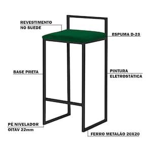 Banqueta Decorativa Jasmine Base Preto Suede Verde - Gran Belo