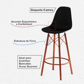 Características: Modelo: Banqueta Eames Material da Estrutura: Ferro Cor da Estrutura: Cobre Cor do Assento: Preto Design moderno e funcional