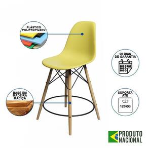 Banqueta eames eiffel de madeira assento amareloA banquetas eames eiffel será um complemento e tanto para a sua casa. Seja na sala de jantar, cozinha ou área gourmet, tornando momentos mais descontraídos e agradáveis. Com um design moderno que trará conforto e estilo para o ambiente. A banqueta possui uma curvatura ergonômica que se encaixa perfeitamente ao corpo.Tipo: banquetaModelo: bistrôCor: amareloCaracterísticasProduto nacionalBase: madeira maciçaAssento: plástico polipropilenoSuporta até 120kgGarantia: 90 diasDimensões do produtoAltura: 115cmAltura até o assento: 70cmLargura: 45cmComprimento: 45cmImagens meramente ilustrativas, podendo haver uma pequena variação na cor dependendo de cada tela ou monitor. Objetos da imagem ambientada não acompanham o produto.Banqueta Eames Eiffel de Madeira Assento Amarelo