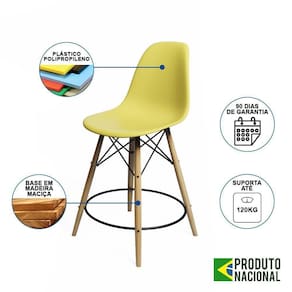 Banqueta eames eiffel de madeira assento amareloA banquetas eames eiffel será um complemento e tanto para a sua casa. Seja na sala de jantar, cozinha ou área gourmet, tornando momentos mais descontraídos e agradáveis. Com um design moderno que trará conforto e estilo para o ambiente. A banqueta possui uma curvatura ergonômica que se encaixa perfeitamente ao corpo.Tipo: banquetaModelo: bistrôCor: amareloCaracterísticasProduto nacionalBase: madeira maciçaAssento: plástico polipropilenoSuporta até 120kgGarantia: 90 diasDimensões do produtoAltura: 115cmAltura até o assento: 70cmLargura: 45cmComprimento: 45cmImagens meramente ilustrativas, podendo haver uma pequena variação na cor dependendo de cada tela ou monitor. Objetos da imagem ambientada não acompanham o produto.
