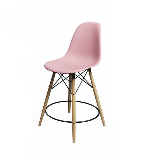 Banqueta Eames Eiffel De Madeira Assento Rosa Claro