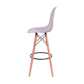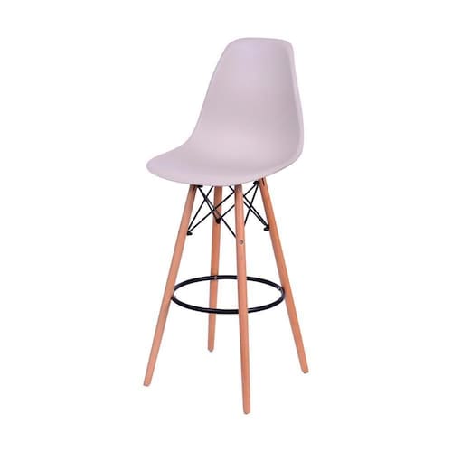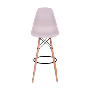 Charles e Ray Eames acreditavam que "o design é um método de ação", e eles continuamente atualizaram seu trabalho à medida que novos materiais se tornaram disponíveis. Suas cadeiras plásticas moldadas foram projetadas mente no metal e incorporadas como um protótipo na competição 1948 internacional do moMA para o projeto low-cost do furniture. Eles mudaram o material para fibra de vidro em 1950, e hoje as cadeiras são feitas de polipropileno reciclável. Charles estava insatisfeito com a fibra de vidro, e foi só depois de sua morte que o acabamento fosco que ele desejou foi alcançado, graças aos avanços nos materiais. Essa linda banqueta é composta pelo pé em madeira e assento em polipropileno.