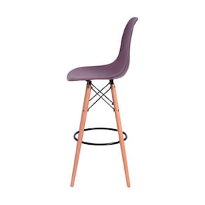 Charles e Ray Eames acreditavam que "o design é um método de ação", e eles continuamente atualizaram seu trabalho à medida que novos materiais se tornaram disponíveis. Suas cadeiras plásticas moldadas foram projetadas originalmente no metal e incorporadas como um protótipo na competição 1948 internacional do moMA para o projeto low-cost do furniture. Eles mudaram o material para fibra de vidro em 1950, e hoje as cadeiras são feitas de polipropileno reciclável. Charles estava insatisfeito com a fibra de vidro, e foi só depois de sua morte que o acabamento fosco que ele desejou foi alcançado, graças aos avanços nos materiais. Essa linda banqueta é composta pelo pé em madeira e assento em polipropileno.