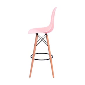 Charles e Ray Eames acreditavam que "o design é um método de ação", e eles continuamente atualizaram seu trabalho à medida que novos materiais se tornaram disponíveis. Suas cadeiras plásticas moldadas foram projetadas originalmente no metal e incorporadas como um protótipo na competição 1948 internacional do moMA para o projeto low-cost do furniture. Eles mudaram o material para fibra de vidro em 1950, e hoje as cadeiras são feitas de polipropileno reciclável. Charles estava insatisfeito com a fibra de vidro, e foi só depois de sua morte que o acabamento fosco que ele desejou foi alcançado, graças aos avanços nos materiais. Essa linda banqueta é composta pelo pé em madeira e assento em polipropileno.