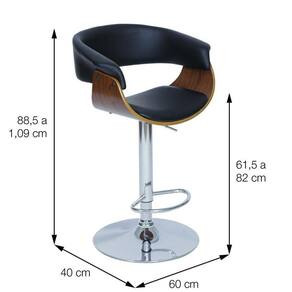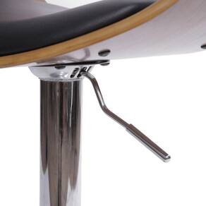 Banqueta Elba Madeira Acolchoada Revest em Couro Sintético Preta possui Estrutura em madeira laminada com assento em espuma revestida em PU. Com ajuste de altura, giratória e base em metal. Medidas: Altura do chão ao encosto88,5 a 1,09cm Altura do chão ao assento 61,5 a 82cm Largura 60cm Comprimento 40cm