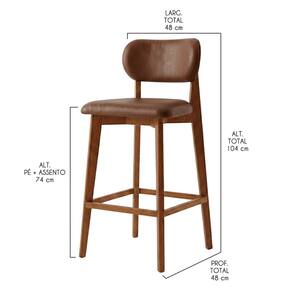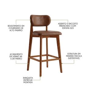 A Banqueta Laura une design atemporal, conforto e durabilidade em uma peça pensada para valorizar qualquer ambiente. Com estrutura robusta e acabamento refinado, elas trazem a elegância da madeira natural combinada à praticidade de um revestimento moderno e resistente. Versáteis e sofisticadas, essa banqueta é ideal para cozinhas, áreas gourmet ou espaços comerciais, harmonizando perfeitamente com estilos contemporâneo e moderno. Oferecem conforto no uso diário, sem abrir mão da estética. Sua estrutura é produzida em madeira maciça, garantindo alta resistência, estabilidade e longa vida útil. Com design ergonômico e linhas suaves, a banqueta proporciona conforto mesmo em usos prolongados.   CARACTERÍSTICAS TÉCNICAS: - Produzido em Madeira Maciça - Acabamento Envernizado Semi Brilho na Cor Pinhão - Assento Preenchido com Espuma D23 - Encosto Preenchido com Espuma D23 - Tecido Couríssimo de Alto Padrão - Suporta até 150 kg *PRODUTO ENTREGUE MONTADO   MEDIDAS: Altura Total: 104 cm Altura até o Assento: 74 cm Largura Total: 48 cm Largura do Assento: 50 cm Profundidade Total: 48 cm Profundidade do Assento: 44 cm   INFORMAÇÕES ADICIONAIS: - ATENÇÃO: Móvel produzido em madeira maciça natural podendo ocorrer mudança no tom da madeira conforme o produto; - Conferir se o produto está de acordo com o que comprou, produto danificado não será aceito troca; - As imagens ambientadas são meramente ilustrativas e podem apresentar itens que não compõe o produto. As cores do produto podem variar de acordo com o monitor, a iluminação do ambiente ou sua percepção visual; - Limpeza deve ser feita com pano macio e seco ou levemente umedecido com água e sabão neutro. Não devem ser utilizados produtos abrasivos; Garantia para defeitos de fabricação conforme Código de Defesa do Consumidor.