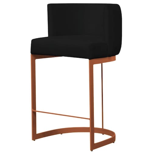 Banqueta Estofada Emily Base Bronze Veludo Preto - Montanaris Decor