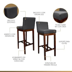 A Banqueta Alta Lisboa é uma peça de destaque para qualquer ambiente, produzida em Madeira Maciça com acabamento em Verniz Capuccino, garantindo durabilidade e elegância. Seu assento e encosto preenchidos com Espuma D26 e D23, respectivamente, oferecem o máximo conforto para refeições e momentos de descontração. Além disso, o revestimento em Tecido Suede na cor Cinza confere um toque moderno e versátil. Seja na cozinha, sala de jantar ou espaço gourmet, essa banqueta é a escolha perfeita para agregar charme e funcionalidade ao lar!