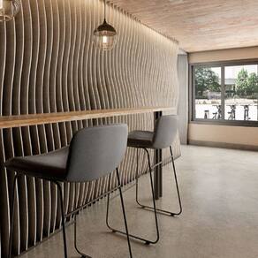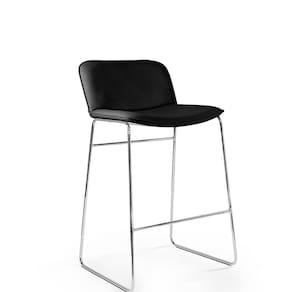 Banqueta alta Rennes com assento e encosto em madeira laminada estofado com espuma laminada com densidade D28. Revestimento em sintético preto