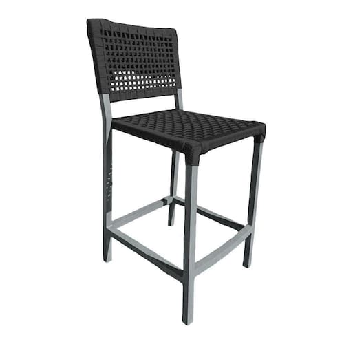 Banqueta França Em Corda Náutica E Base Em Alumínio Cinza Para área Gourmet Preta - Cor: Preto