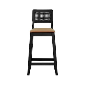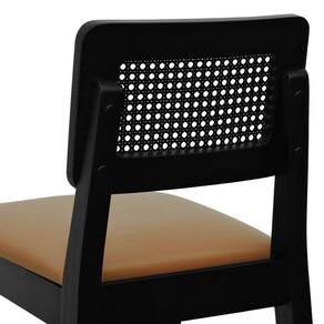Banqueta Gabi Madeira Maciça Encosto C/ Telinha C/ 68cm Altura - Preto Assento Estofado Corano Caramelo
