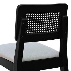 Banqueta Gabi Madeira Maciça Encosto C- Telinha C- 68cm Altura - Preto Assento Estofado Linho Bege Mescla Impermeável