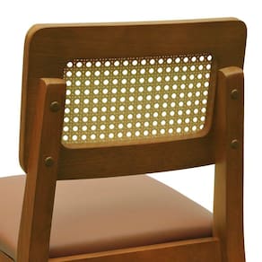 - Materiais: Estrutura em madeira de pinus maciço, com encosto anatômico com aplicação de telinha sextavada natural e assento estofado