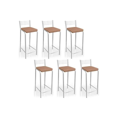 Banqueta Gênova B705 Kit 6 Un Cromada - Assento Capuccino 31 - Kappesberg