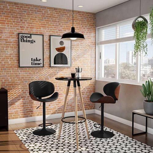 que tal a banqueta itabira? elegante e robusta, a banqueta itabira vai criar um espaço gourmet cheio de estilo e com ar contemporâneo. enquanto a cor preta traz neutralidade, o amadeirado leva um ar chique à peça, que combina facilmente com diferentes bancadas e balcões. feita para acomodar bem, ela tem estrutura resistente, assento e encosto curvados, enchimento em espuma, altura regulável e apoio para os pés. só coisa boa para a sua casa ;)