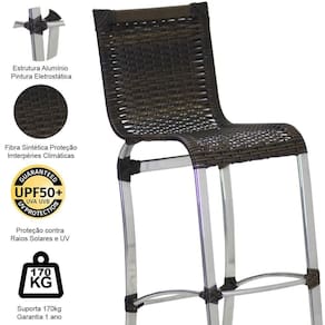 ESPECIFICACOES TECNICAS: - Altura total: 107cm - Altura assento ao chao: 72cm - Largura: 40cm - Profundidade: 50cm - Suporta ate 180 kg