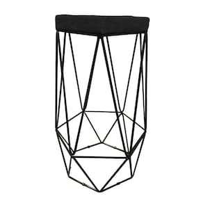 Banqueta Hexagonal Aramado Preto Suede Preto