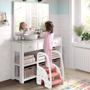 Banqueta infantil para pia de banheiro, torre de pé infantil, banquinho de 3 degraus com alças de segurança para cozinha, cama, vaso sanitário, escada antiderrapante de três degraus para aprender crianças, degraus rosa — Banquinho multiuso: nosso banquinho infantil