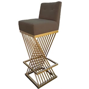 Contando com um design inovador nossa Banqueta possui um diferencial no desenho de sua Base de ferro, além de assento e encosto estofados.
