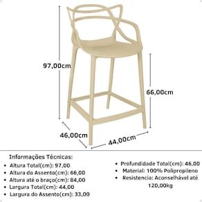 Largura: 44 | Tamanho: 97x44x46 | Produto: Banqueta Média Allegra 66cm | Tonalidade: Nude | Comprimento: 46 | Altura: 97 | Peso do Produto: 6,50 | Cor: Nude | Material da Estrutura: Polipropileno | Quantidade de Lugares: 1 | do modelo: 1 | Exige montagem: Sim | Baterias são necessárias?: Não | Certificação de teste externa: Não | Is Fragile: Não | de caixas: 1 | Fabricante: Magazine Decor | Dimensões do artigo: 97x44x46 | da peça: 1 | Peso do item: 6,50 | Principais Características do Produto (bullet_point#0): A Banqueta Média Allegra é uma opção moderna e sofisticada que vai deixar a sua casa ainda mais elegante! Perfeita para ser utilizada em bancadas, bares e cozinhas , essa banqueta é extremamente confortável. | Principais Características do Produto (bullet_point#1): Com um encosto curvado que se molda perfeitamente ao corpo, proporciona uma postura adequada e aconchegante. Por ser uma Banqueta Alta ela se adapta a diferentes alturas de bancada, tornando-a versátil e prática. | Principais Características do Produto (bullet_point#2): A Banqueta Média Allegra é feita totalmente em polipropileno de alta qualidade, material que traz um toque de elegância e sofisticação para qualquer ambiente. | Componentes incluídos: 1 Banqueta | Quantidade de itens: 1 | Dimensões do item P x L x A: 97x44x46 | Ambiente Indicado: Cozinhas | Coleção Jardim: Não | Altura da Banqueta: 97 | Tipo do Material da Estrutura: Polipropileno | Formato: Média | Selecione: Banqueta Média Allegra