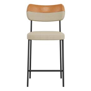 Banqueta Média Cozinha Lila Estofada Couríssimo Whisky Linho Bege - Desk Design