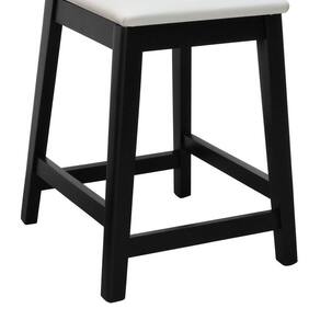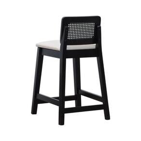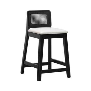 Banqueta Média Gabi Madeira Maciça Telinha - Preto Assento Estofado Corano Bege