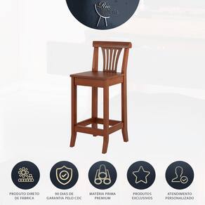 A Banqueta Média Valentina promete ser o centro das atenções em todos os ambientes. Perfeita para bancada de cozinha américa, balcão, mesa bar, espaço gourmet, cantinho do churrasco e muito mais. Possui uma estrutura reforçada em madeira de taeda com acabamento em verniz aumentando a sua durabilidade. O seu ambiente vai ficar muito mais elegante e cheio de charme com os móveis da Rio Madeira Interiores. CARACTERÍSTICA DO PRODUTO: - Produzida em Madeira Maciça Taeda - Acabamento em Verniz cor Imbuia - Produto Entregue Montado DADOS TÉCNICOS DO PRODUTO: - Altura Total: 90 cm - Altura do Encosto: 26 cm - Altura para sentar: 65 cm - Largura Total: 36 cm - Largura do Assento: 40/35 cm - Profundidade Total: 46 cm - Profundidade do Assento: 38 cm - Peso: 8 kg EMBALAGEM DO PRODUTO: Altura Total: 100,5 cm Largura: 50 cm Profundidade: 40 cm Peso: 12 kg Cubagem: 0,210 m³ INFORMAÇÕES ADICIONAIS: Garantia para defeitos de fabricação conforme Código de Defesa do Consumidor. *ATENÇÃO: Entregas são feitas em horário comercial. Não nos responsabilizamos pela montagem, subir ou içar o móvel. **As imagens ambientadas são meramente ilustrativas e podem apresentar itens que não compõe o produto, as cores do produto podem variar de acordo com o monitor, a iluminação do ambiente ou sua percepção visual. ***Limpeza: Deve ser feita com pano macio e seco ou levemente umedecido com água e sabão neutro. Não devem ser utilizados abrasivos.