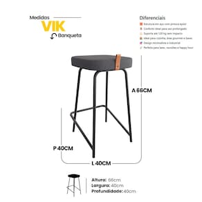 A Banqueta Média Vik Estofada é a escolha ideal para quem busca conforto, design moderno e durabilidade para ambientes com bancada média. Com visual industrial e linhas minimalistas, ela valoriza o espaço e entrega praticidade no uso diário.