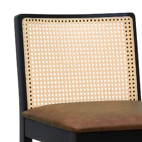 - Materiais: Estrutura em madeira de eucalipto maciço envernizado, assento estofado e encosto com telinha aplicada
