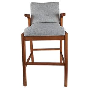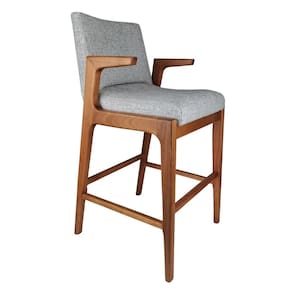 Essa Banqueta Montevidéu Alta - Cinza exala sofisticação e conforto. A sua estrutura é feita em madeira maciça com um acabamento em tom natural, realçando a beleza dos veios da madeira.