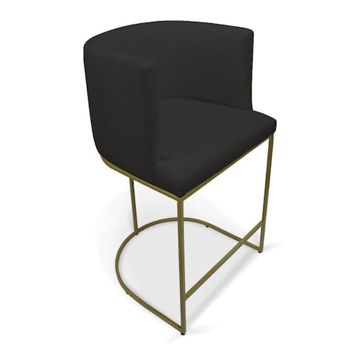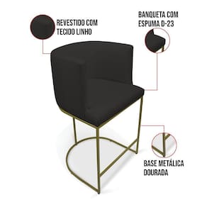 Banqueta Paola Linho Preto A79 Base Metálica Dourada - D'rossi