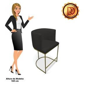 Banqueta Paola Linho Preto A79 Base Metálica Dourada - D`rossi