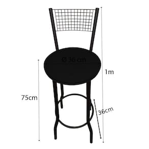 toque de modernidade e permitindo a circulação de ar. O assento é revestido com sintético, garantindo conforto durante longos períodos de uso. Essa banqueta é perfeita para compor mesas altas em bistrôs, cafés ou espaços externos, criando
