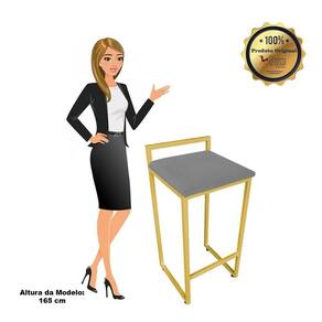 Banqueta Pietra Suede Grafite Base Dourado D'Rossi