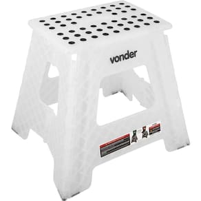 Produto: Banqueta Plástica Dobrável | Cor: Branco | Altura Máxima: 36 cm | Largura: 34 cm | Marca: Vonder | Modelo: 3540036000 | Profundidade: 41 cm | Quantidade de caixas de embalagem: 1 | Requer Montagem: Não | Altura da Banqueta: Baixa até 45 cm | Ambiente Indicado: Interno | Coleção Jardim: Não | Material da Estrutura: Polipropopileno | Peso do Produto: 1,66 | Tonalidade: Transparente