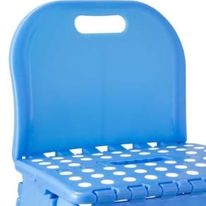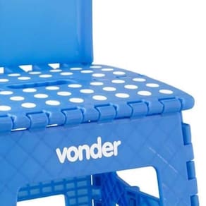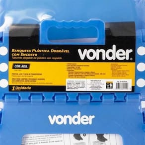 Conteúdo da embalagem: 1 Banqueta Plástica Dobrável Azul 220mm Com Encosto Vonder